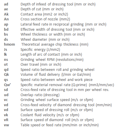 Q : Abbreviations of Grinding Terms?